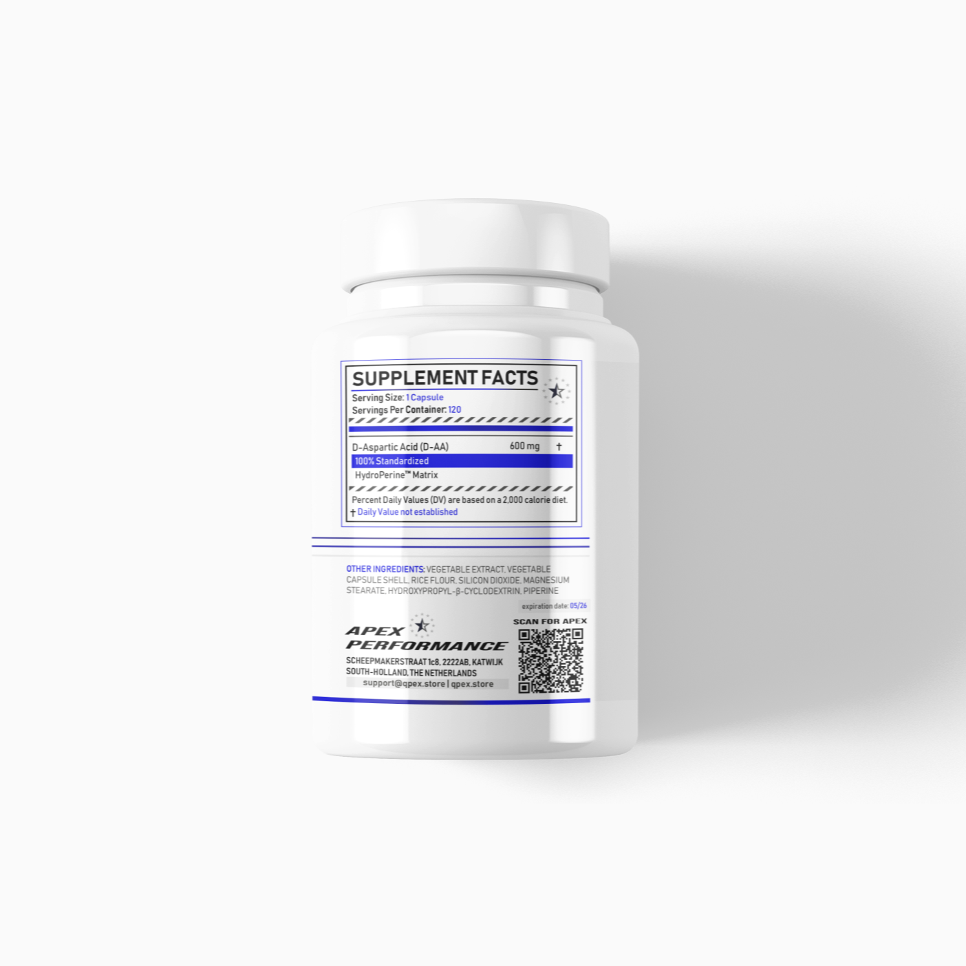 D-AA (D-Aspartic Acid) with HydroPerine™ - 120 V-Capsules