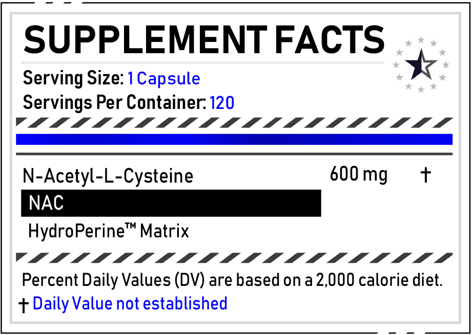 NAC (100% N-Acetyl-L-Cysteine) with HydroPerine™ - 120 V-Capsules